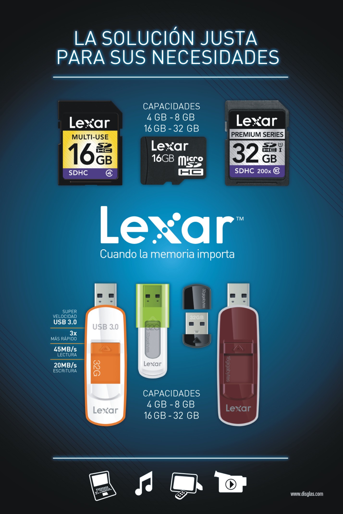 Lexar te presenta su línea prefesional de memorias y lectores digitales. Una amplia gama de velocidades, formatos y capacidades que se adapta a las necesidades de cada fotógrafo.